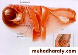 e. acute abdominal pain in rupture ovarian endometriomas which leads to