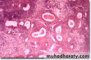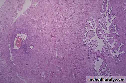 Microscopically:glandular tissue and stroma in myometrium.