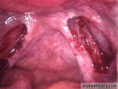 *visible lesions (Bluish nodule) are seen in vagina or on cervix. Such nodules are reliably detected when the examination is performed during menstruation. It confirm the diagnosis.