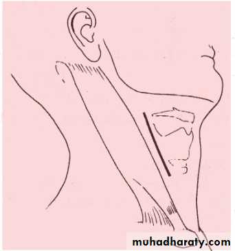 If the state progress and the swelling increases, fluctuation should on no account be awaited because it seldom occurs. Drainage is by a horizontal incision, 2cm below the angle of the mandible. Usually there is no or little frank pus.