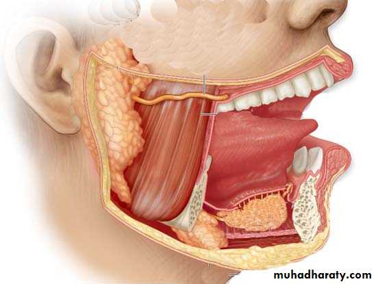 Submaxillary and submental compartment (below the mylohyoid).Aetiology