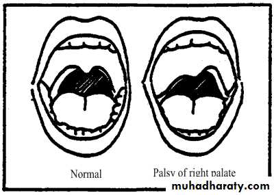 Unilateral: The palate rises up to the healthy side.Treatment:
