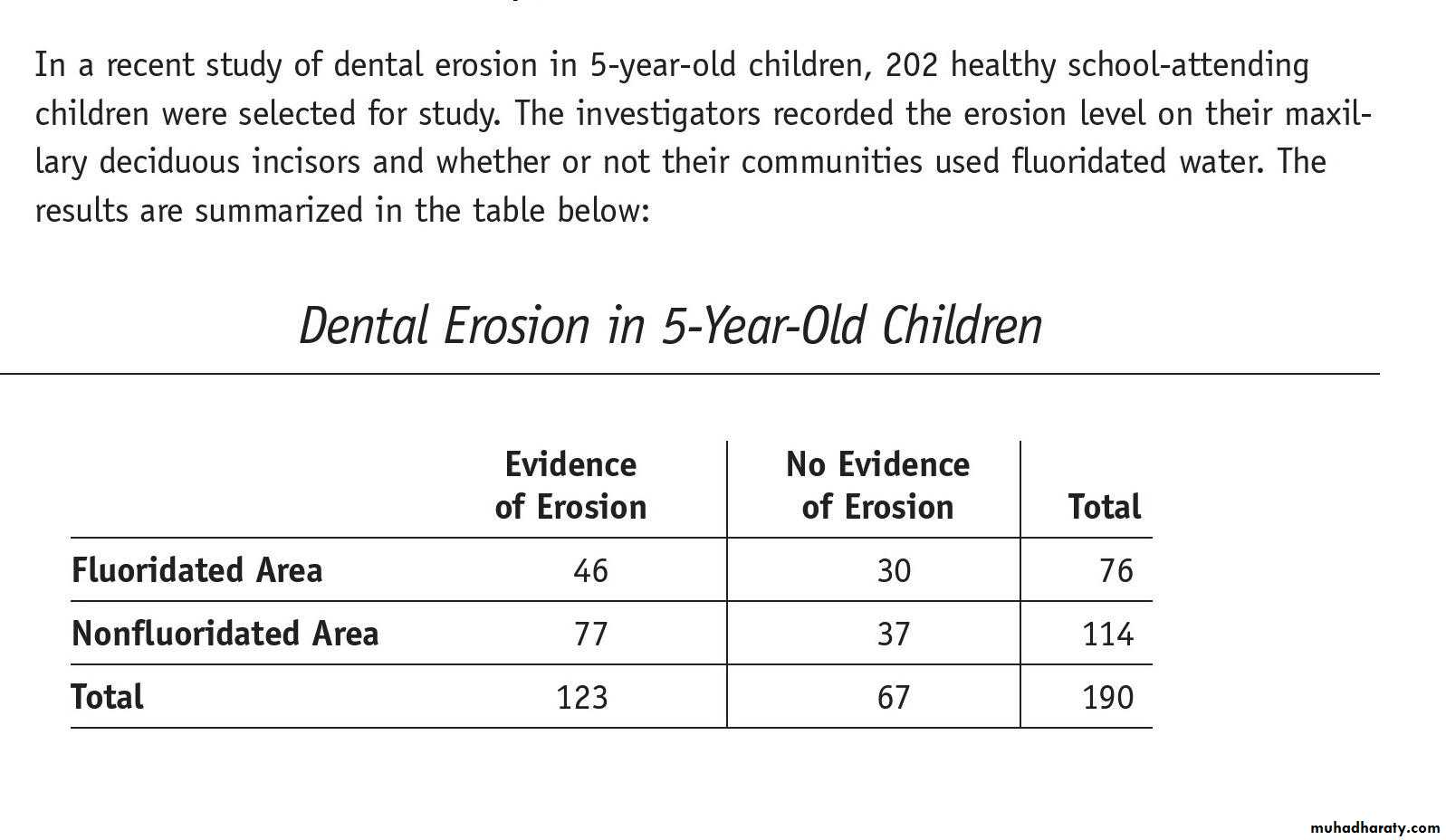 d. Based on your data above, does fluoridation appear to confer a risk of increased dental erosion or a protective tendency? Justify your response by appealing to the numeric value you calculated in part c.
