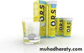 Example; A 5 mo old infant presented with history of acute gastroenteritis, moderate dehydration & his body weight is 6 kg. Calculate the total amount of ORS for this infant & how are you going to give it in the next 24hr.1. Calculate the deficit: 100 ml / kg 100ml × 6 = 600 ml to be given in 4 hr by spoon or syringe (but not by feeding bottles), in sips every few minutes. 3. Maintenance: 100 ml / kg /kg/24 hr until the diarrhea will stop.4. Supplementary ORS is given to replace ongoing losses from diarrhea or emesis.5. An additional 10 ml/kg of ORS is given for each stool.