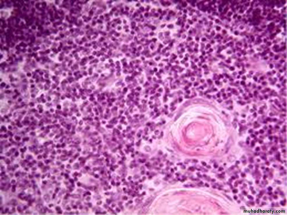 It is spherical lamellated structures about 30-150 µm in diameter formed of central acidophilic hyalanized area surrounded concentrically arranged, flattened epithelial reticular cells that become filled with keratin filaments