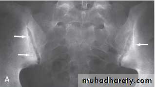 Another characteristic feature is periostitis, especially of metatarsals, phalanges and pelvis, and large, ‘fluffy’ calcaneal spurs.