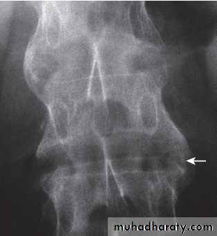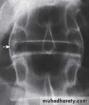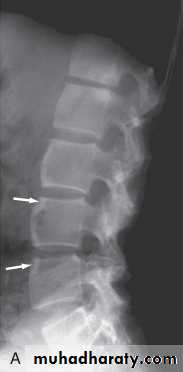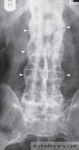 Secondary osteoporosis of the vertebral bodies frequently occurs, leading to an increased risk of vertebral fracture.
