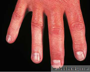 Asymmetrical inflammatory oligoarthritis affects about 40% of patients and often presents abruptly with a combination of synovitis and adjacent periarticular inflammation.This occurs most characteristically in the hands and feet, when synovitis of a finger or toe is coupled with tenosynovitis, enthesitis and inflammation of intervening tissue to give a ‘sausage digit’ or dactylitis