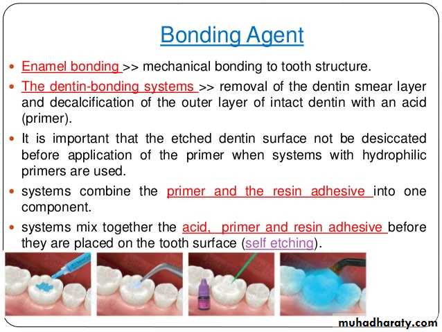 • Bonding agents are unfilled resins that flow into the micro channels and form an interlocking system.• It is available in liquid form
