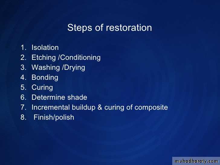 • roughens the surface by removing calcium from enamel .• Washing and Drying
