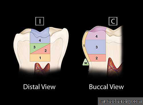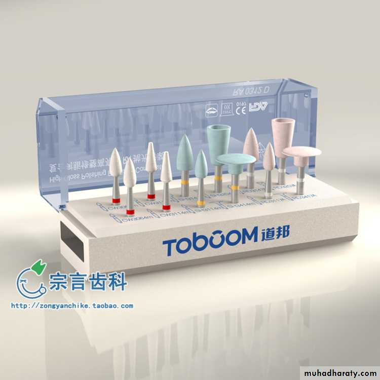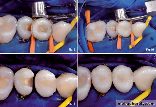Rugby ball’-shaped fine diamond is used to contour the occlusal anatomy. All high-speed instruments must be used with water spray.