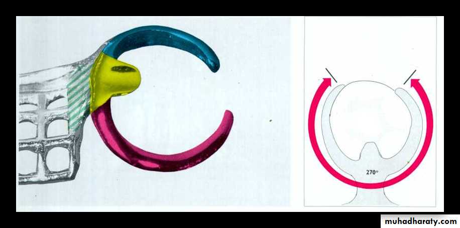 2. Reciprocal: is the quality of a clasp assembly that neutralizes lateral displacement of an abutment when the retentive clasp end passes over the height of contour.