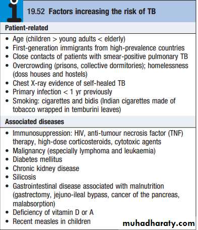 those with a previous history of TB, treatment failureor chronic disease, and in those who are resident in or