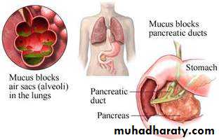 ( 3 base pair deletion ) leading to absence of phenylalanine at position 508 (DF508) of the CF transmembrane conductance regulator (CFTR)Dysfunction in CFTR gene leads to different effects on patterns of electrolyte and water transport ,result in a thick and sticky mucus in the respiratory, digestive and reproductive systems, as well as increased salt in sweat.