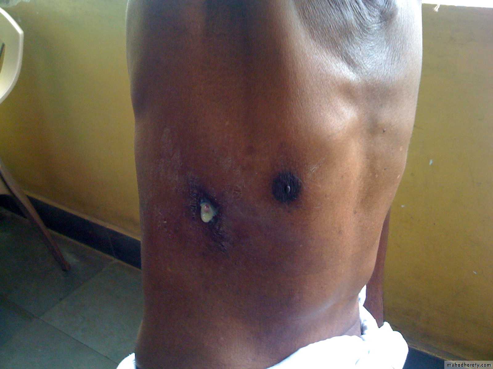 • Or track through the chest wall with the formation of a subcutaneous abscess or sinus (empyema necessitans).