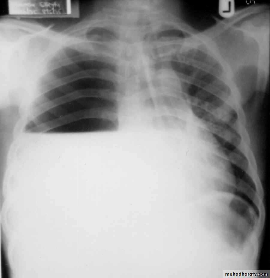 • Empyema necessitans : is a rare complication of empyma occurs when the infected fluid discharge spontaneously into the chest wall from the pleural space result from inadequate treatment of an empyemaInvestigations