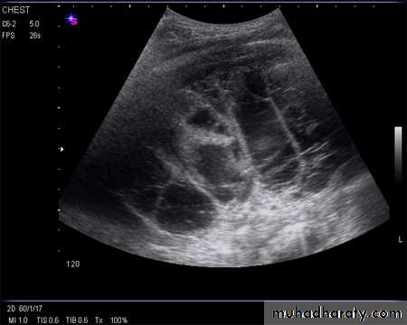 Ultrasound image of heavily septated empyema