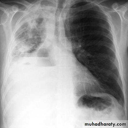 CXR shows right side in tuberculosis with air- fluid level sign