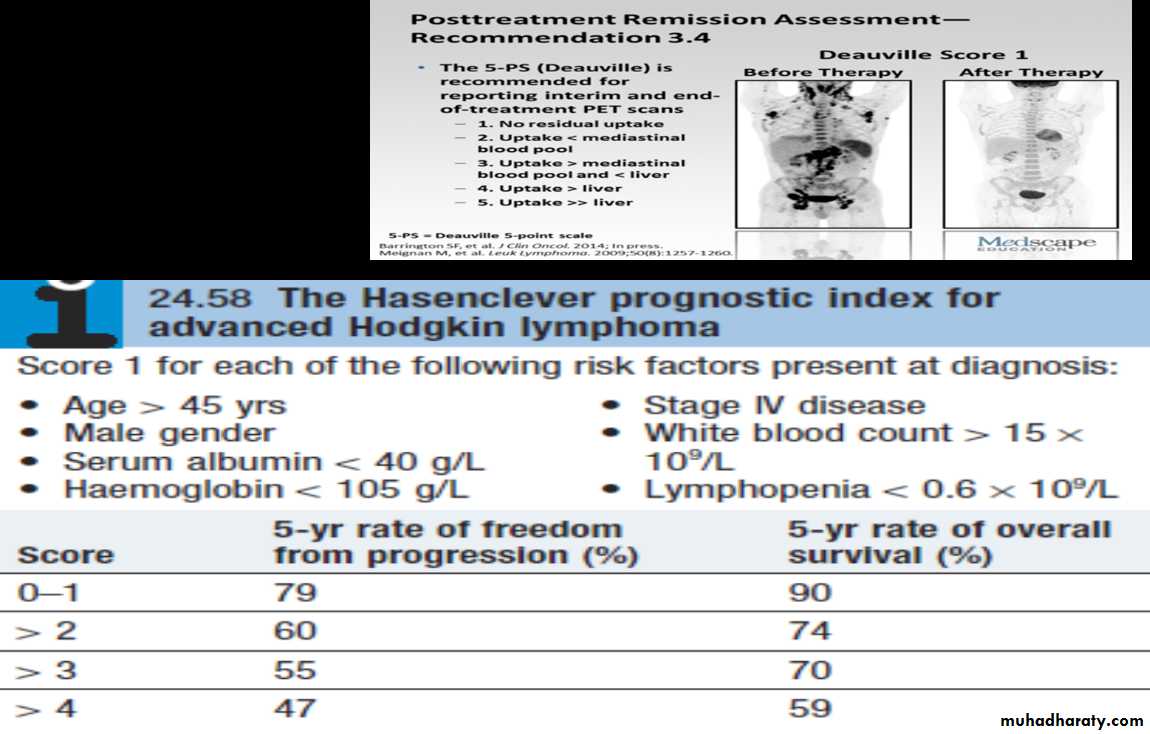 * Treatment response is assessed clinically and by repeat CT and newer (scanning modalities such as positron emission tomography (PET