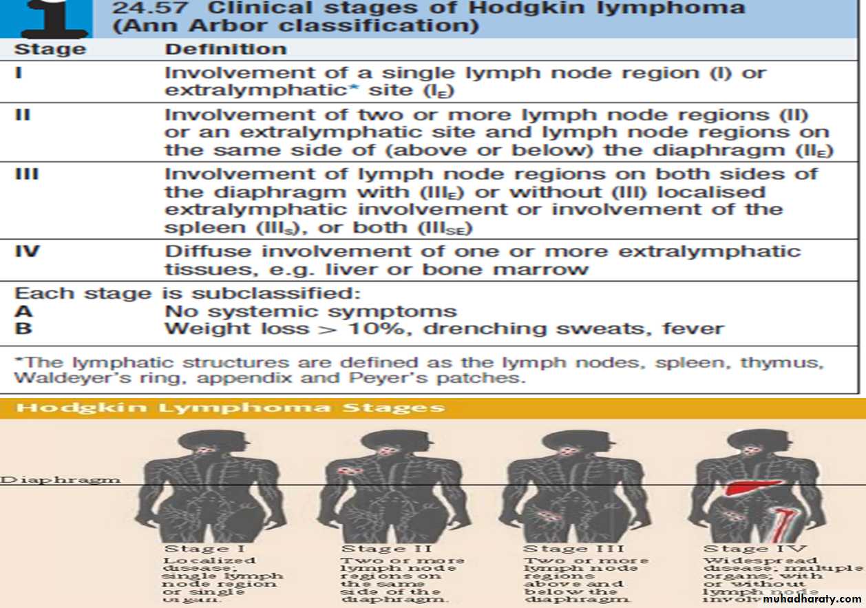 **The same staging system is used for both HL and NHL, but NHL is more likely to be stage III or IV at presentation.