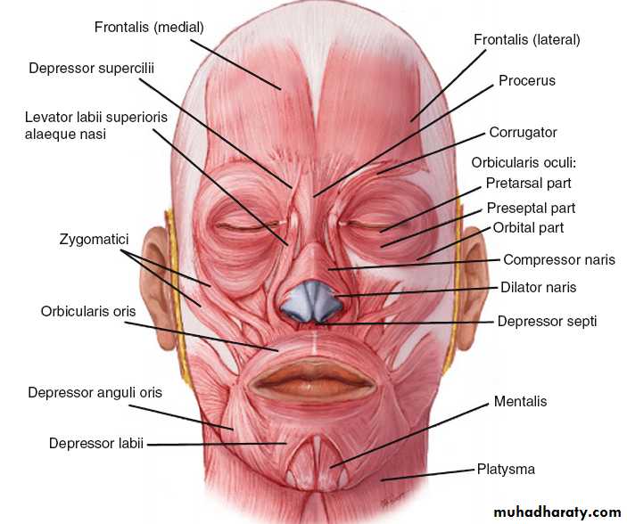 Nerve supply : Buccal and mandibular branches of facial nerve