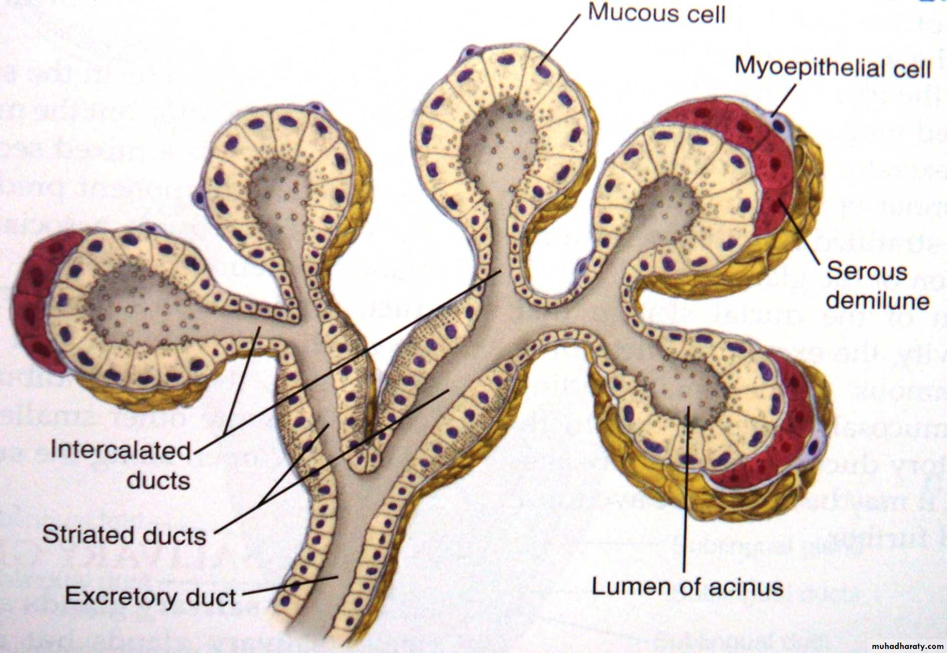 2- Some cells of the outer layer form the contractile myoepithelial cells that are present around the secretory end pieces.