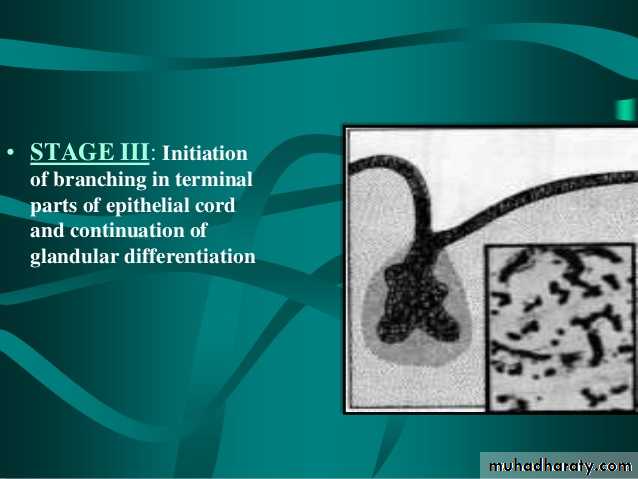 STAGE 3Initiation of branching in terminal parts of epithelial cord and continuation of glandular differentiation