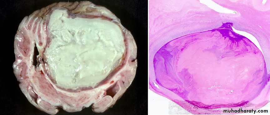 Enzymatic degradation of proteins is the basic mechanism of liquefactive necrosisMorphology