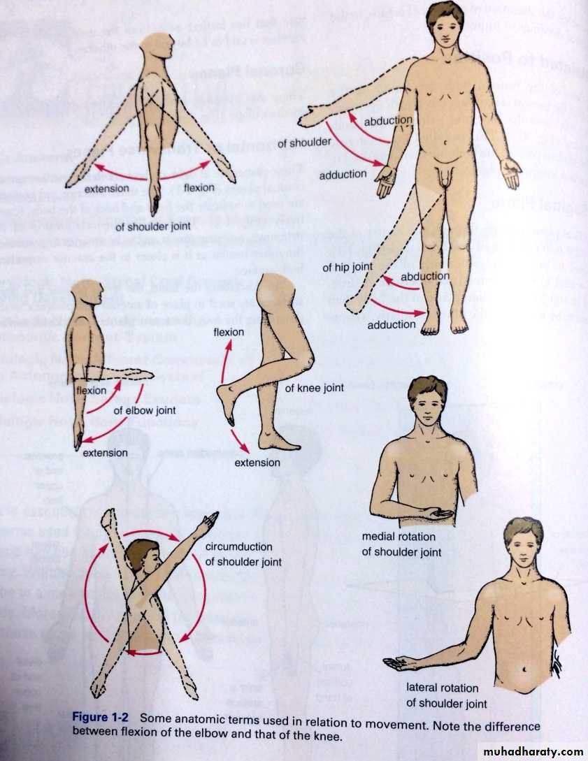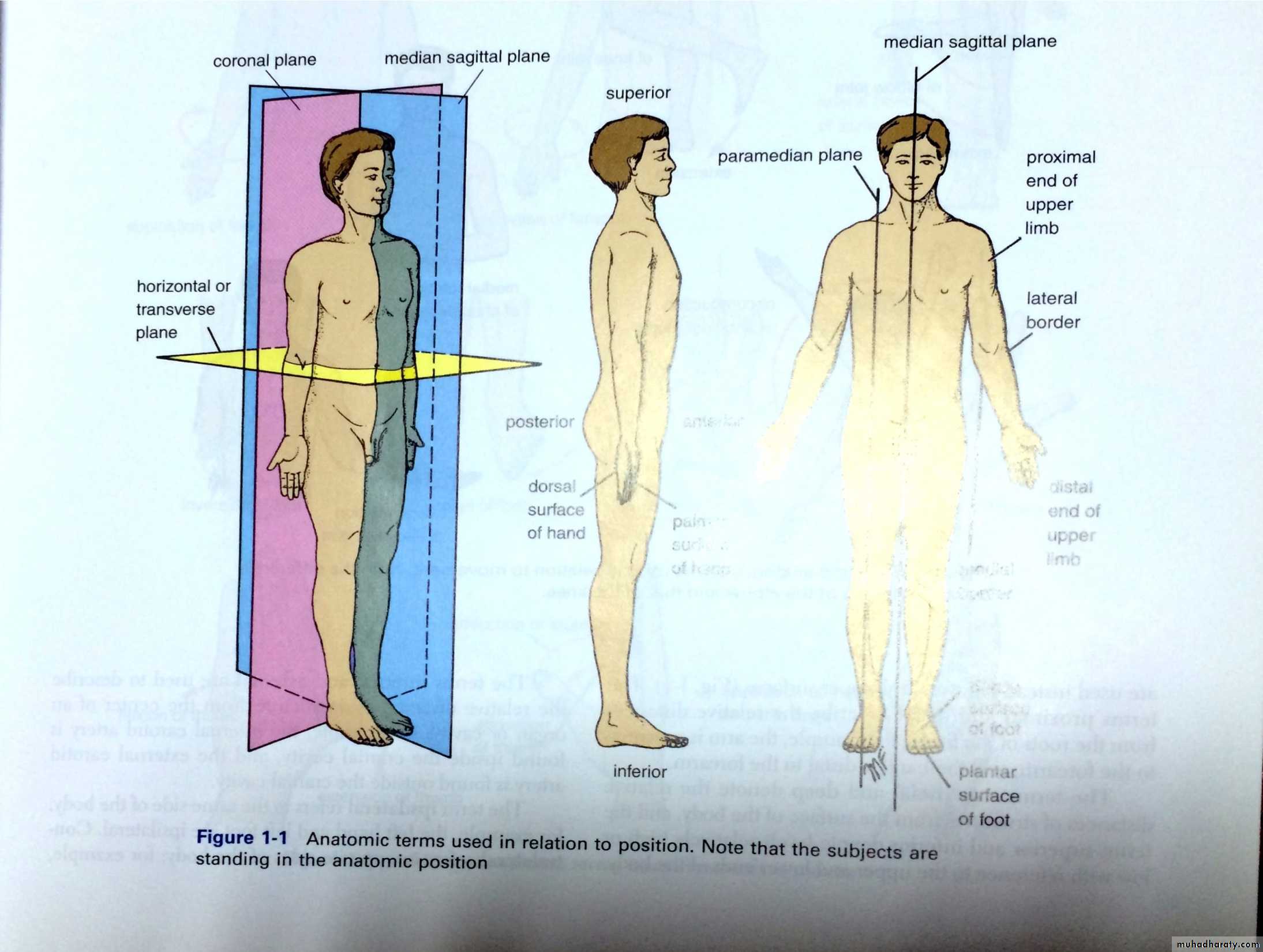 To describe the relationship of two structures,one is said to be anterior or posterior to the other in so far as it is closer to the anterior or posterior body surface,but in describing the hand ,the terms palmar& dorsal surfaces are used in stead of anterior & posterior.In describing the foot ,the terms planter & dorsal are used instead of lower & upper surfaces