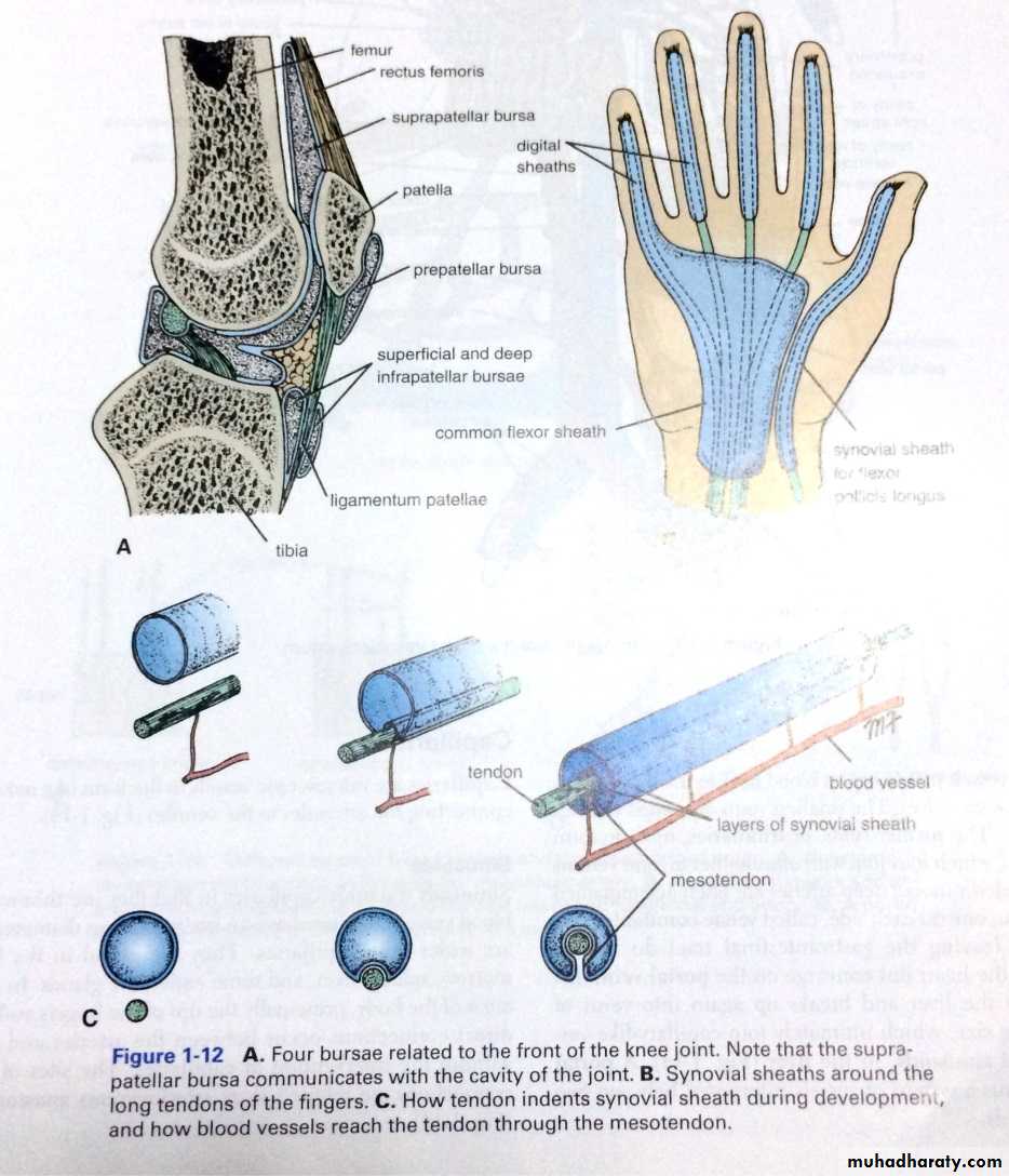 3-Bursa as between the sking & underlying bones or related to some Ms tendons.