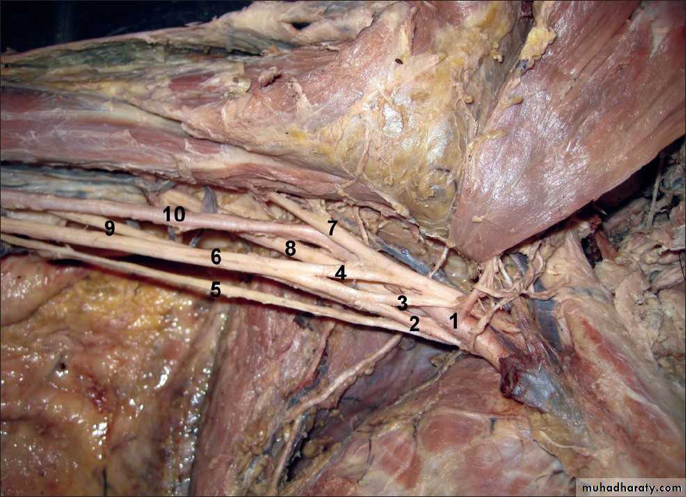 3-Three nerves i.e the Musculocutaneous ,Median & Ulnar nerves.