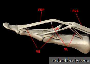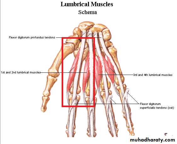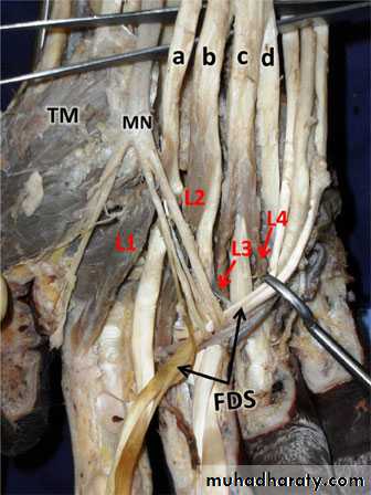 D- 4 Tendons of Flexor Digitorum Profundus & Associated 4 Lumbricals muscles.
