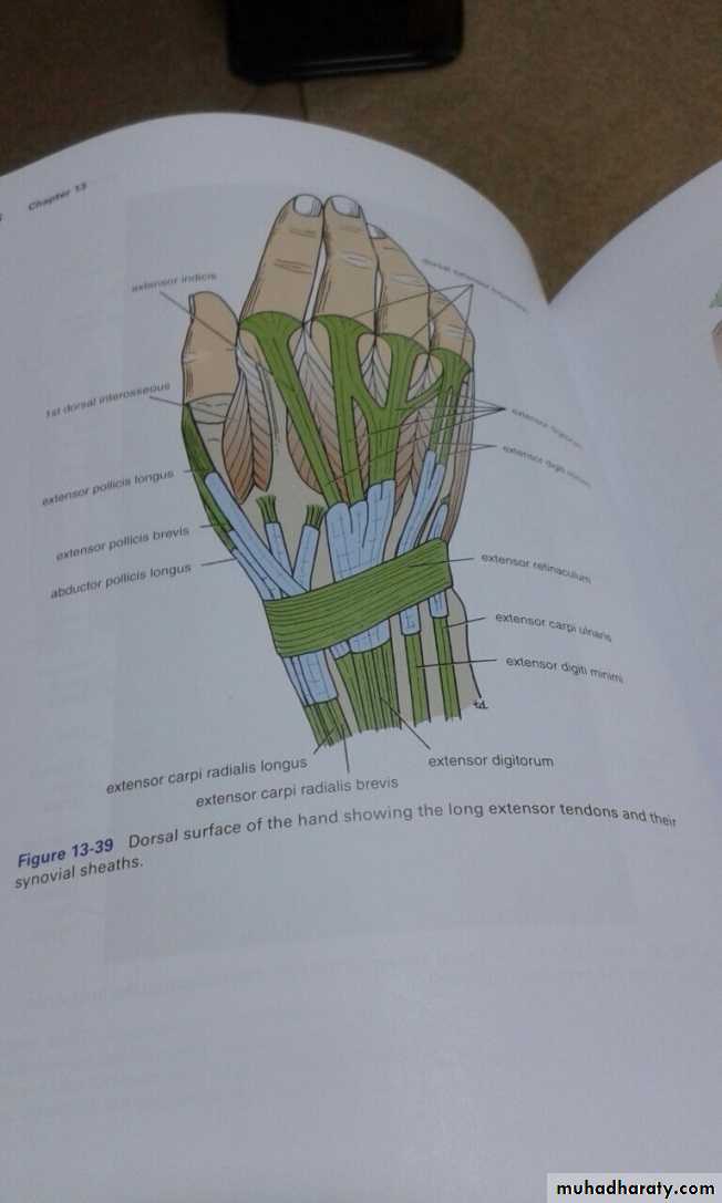 5-The Radial bursa,around tendon of flexor pollicis longus,it continues distally to distal synovial sheath of the Thumb.