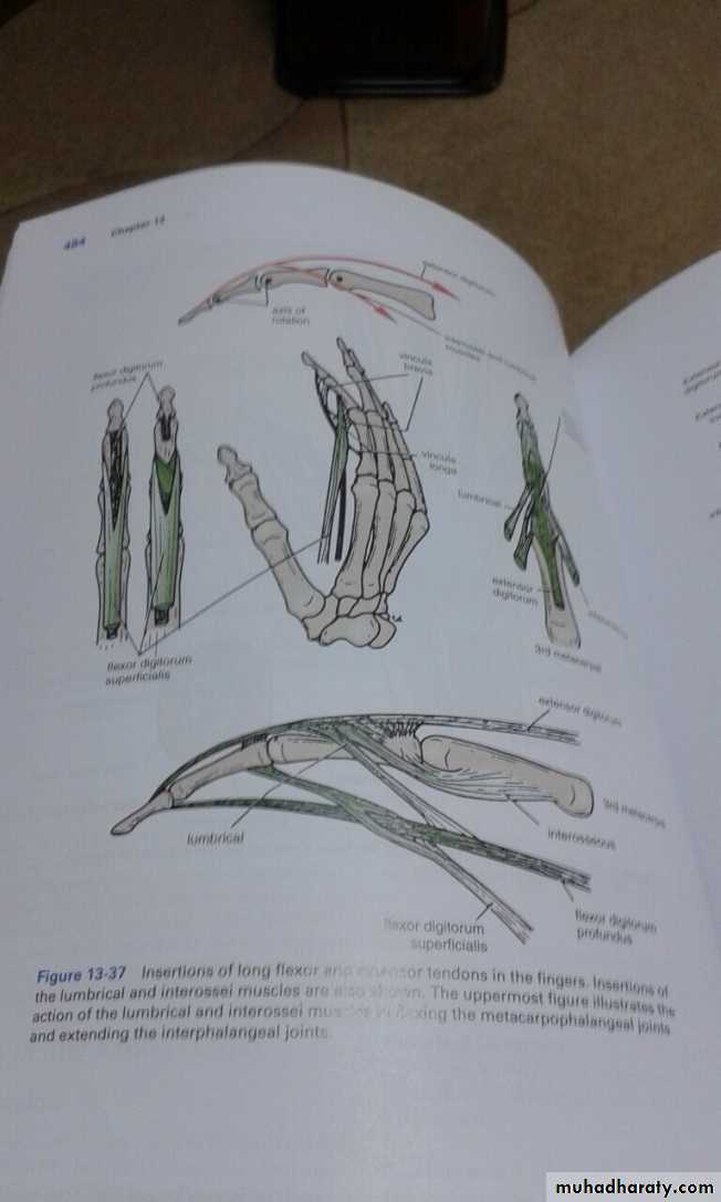 Extensor digitorum takes origin from lateral epicondyle .It gives 4 tendons to the medial four fingers on the back& insert via extensor expansion to middle & distal phalanges.