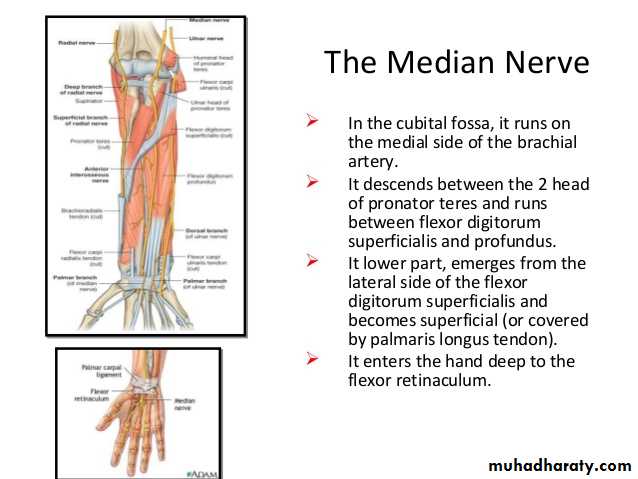 4-The Median nerve.Thus the median N is liable for compression in certain circumstances leading to what is called Carpal Tunnel Syndrome.