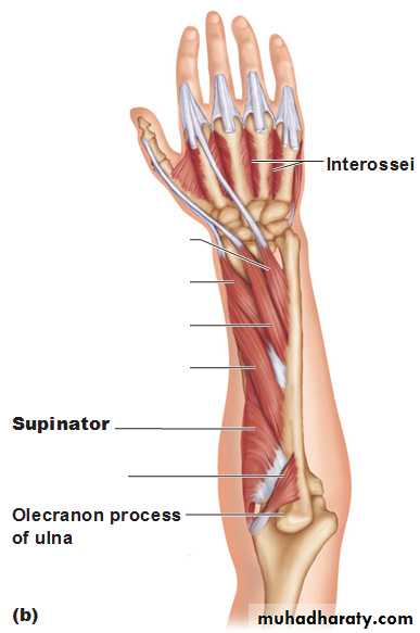 2-The Supinator by deep branch of Radial N as it pierces its substance.