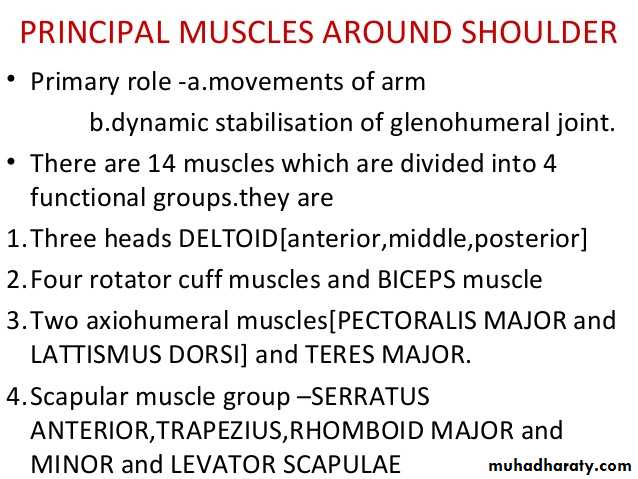 • 1-Flexion is performed by anterior fibers of Deltoid,clavicular head of pectoralis major,Biceps & Coracobrachialis muscles.