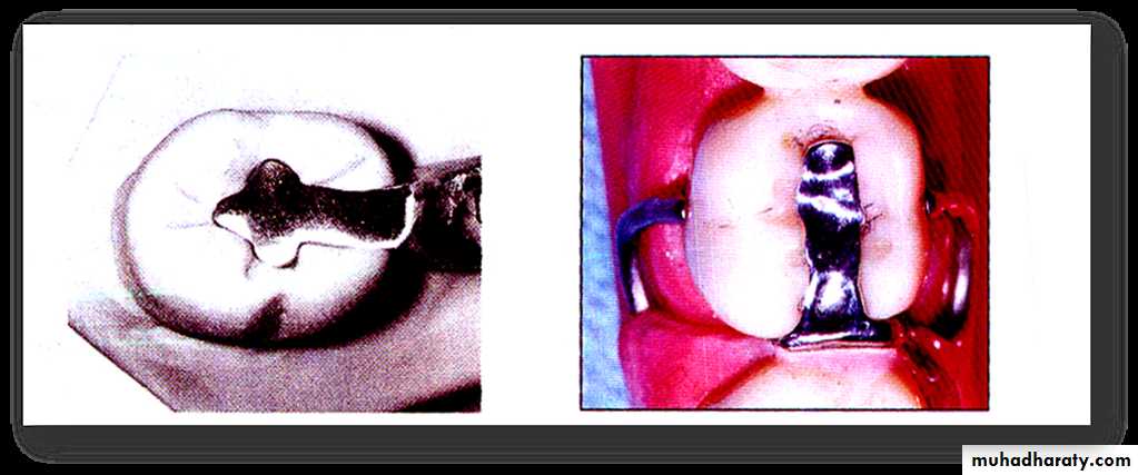 Used in situation in which the most posterior abutment is a mesially tipped molar, to minimize further tipping of the abutment and to ensure that the forces are directed down the long axis of the abutment. This rest should extend more than one-half the mesiodistal width of the toothc. Interproximal occlusal rest