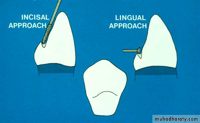 First method: A slightly rounded V is prepared on the lingual surface at the junction of the gingival and the middle one third of the tooth. The apex of the V is directed incisally. The mesio-distal length of the preparation should be a minimum of 2.5 to 3mm, labio-lingual width about 2mm, and incisal-apical depth a minimum of 1.5mm. This preparation of the tooth starts with an inverted cone shaped bur and progresses to a smaller tapered bur with a round end to complete the preparation.Second method: A ball type of rest may be used in a prepared seat. Such a rest seat may be prepared in tooth surfaces with overly sufficient enamel thickness or may be prepared in restorations placed in teeth in which enamel thickness is inadequate. Ball type rests are better suited for conservative restorations (e.g., silver amalgam, pin inlays, composite resin) in anterior teeth than are the inverted V types of rest seats.