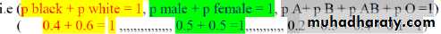 2) The sum of the probabilities of mutually exclusive (can't occur simultaneously) outcome is equal to one.(black or white, male or female, blood group A or B or AB or O)