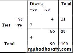 2- P (dis. -ve & test -ve.) = 90/100 x 86/90 = 86/100