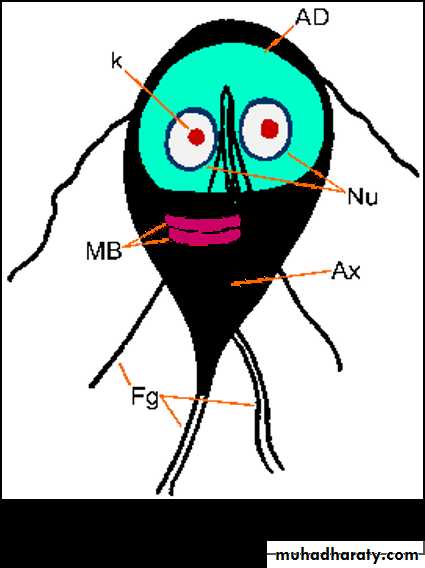 Flagellated (4 pairs of flagella)