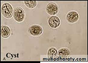 Diagnostic stage: cyst or/and trophozoite