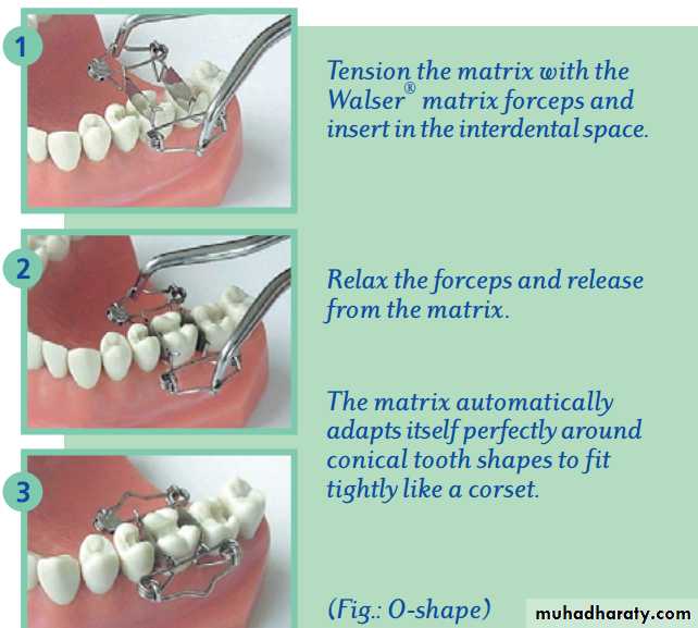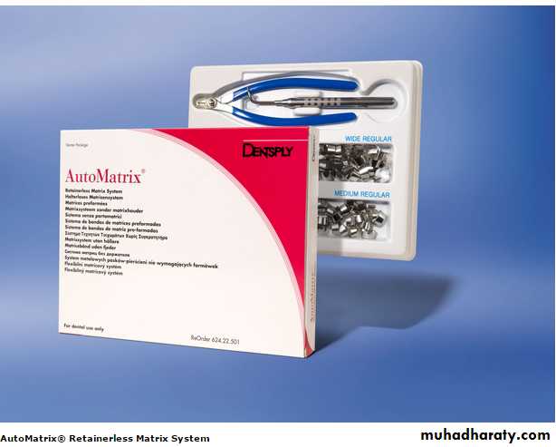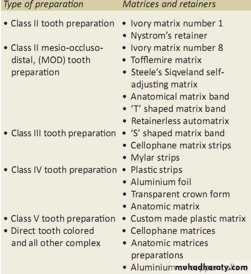 A matrix system provides and takes the place of the proximal tooth surface that was removed to restore the proximal contours and contact to their normal shape and function.Classification of Matrices
