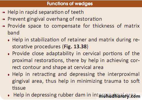Wooden wedges:These are most commonly used and preferred as they can be easily trimmed and can be fitted in gingival embrasure.