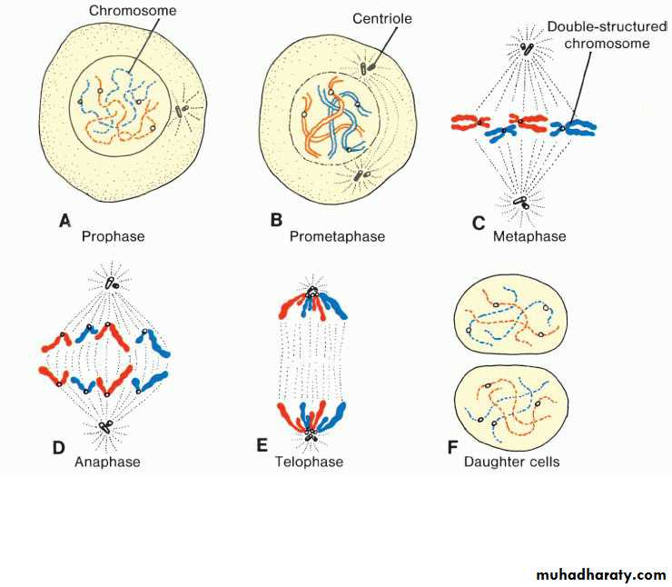2. The prometaphase:Each of the contracted chr could be seen as two parallel units connected by a centromere, each unit is called a chromatid.