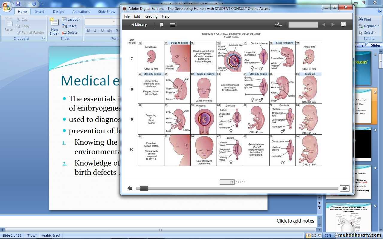 Embryology: prenatal development of embryos and fetuses. So it means the study of the developmental process starting from a single cell to a baby in 9 months of age.Objective