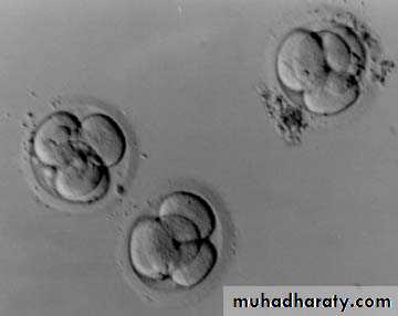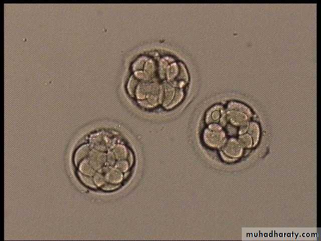 • The stages of development are: Fertilized ovum (zygote) 2-cell stage 4-cell stage 8-cell stage 16 cell stage Morula Blastocyst
