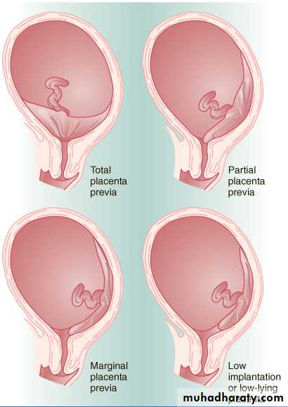 Implants close to the int os …. Placenta previa (antepartum hemorrhage in form of painless vaginal bleeding in the third trimester,10% diagnosed incidentally by ultrasonography or at term.)