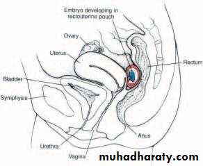 1, implantation in the abdominal cavity. The ovum most frequently implants in the rectouterine cavity (Douglas’ pouch) but may implant at any place covered by peritoneum.2, implantation in the ampullary region of the tube.